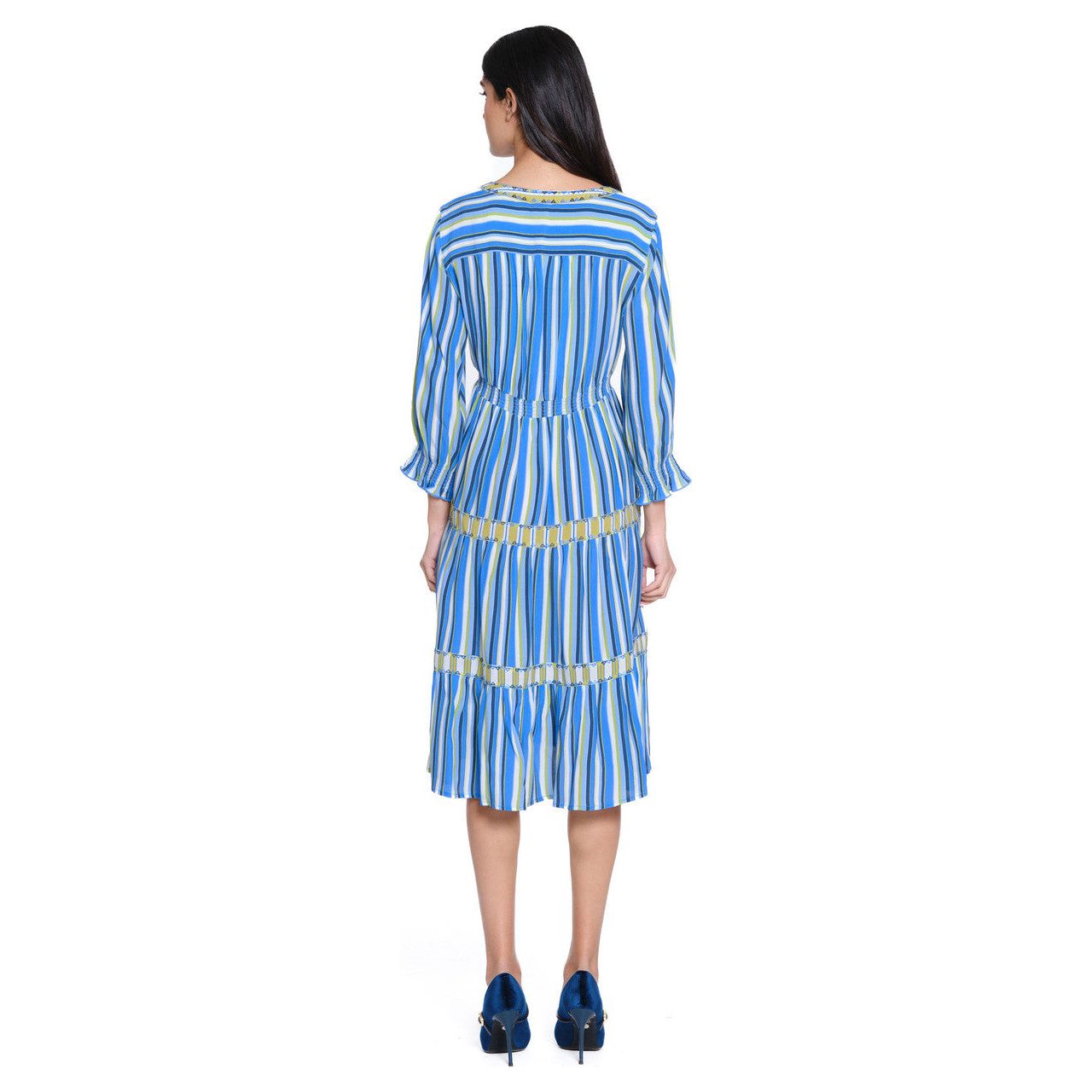 John Mark Blue Stripe Tiered Popover Dress (J25566DM)