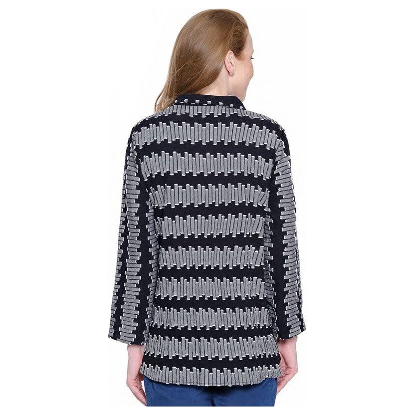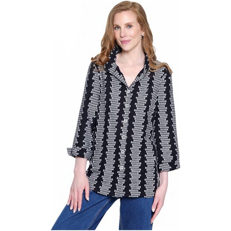Ali Miles Black & White Woven Jacquard Button Front Shirt (A35810BM)