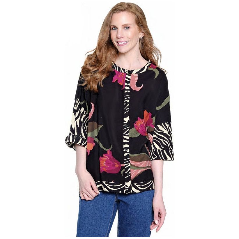 Ali Miles Mixed Print Dolman Sleeve Shirt (A35818BM)