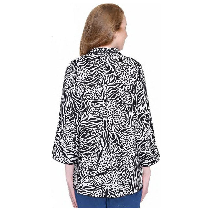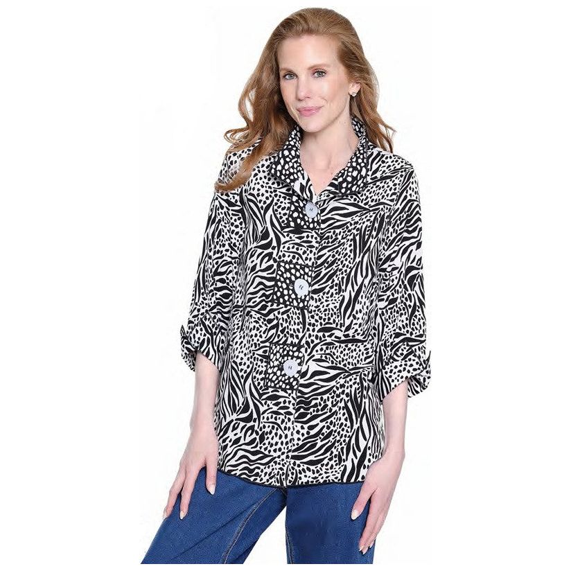 Ali Miles Woven Black & White Print Large Button Front Shirt /Jacket (A35830BM)