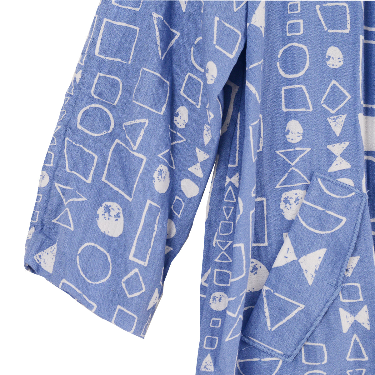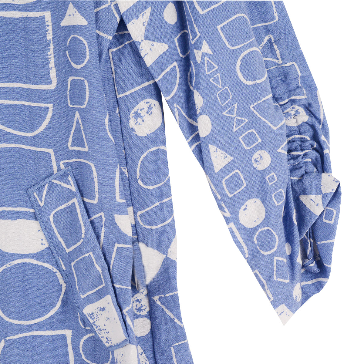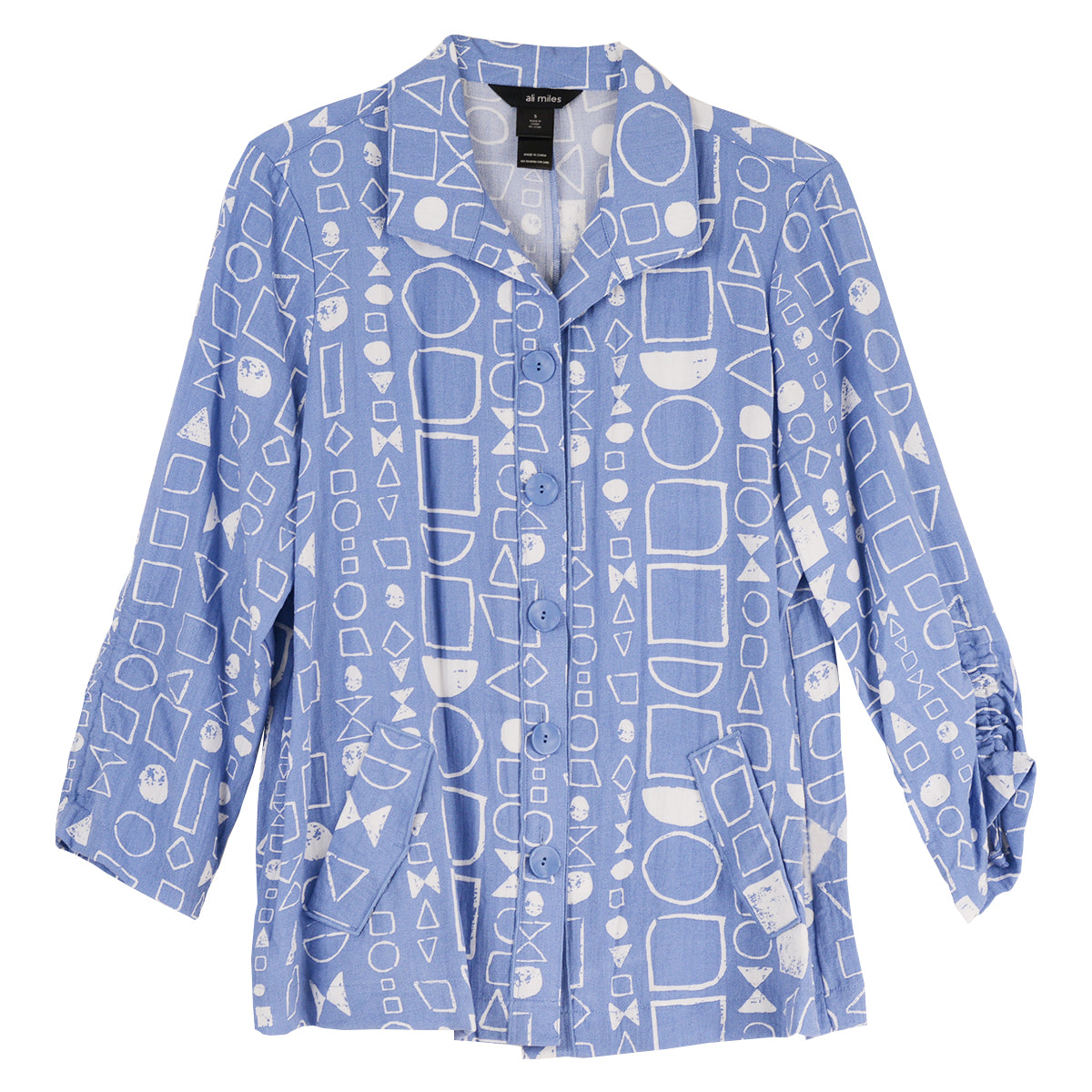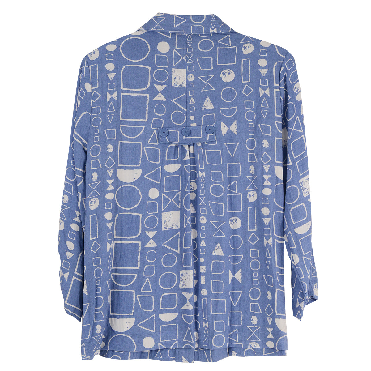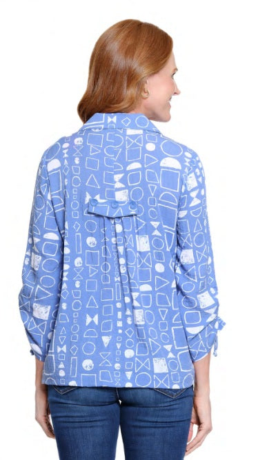 Ali Miles Woven Geo Full Button Front Point Collar Tunic (BLU/WHT)