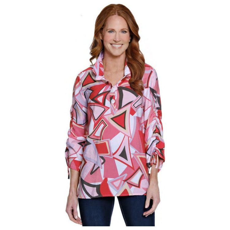 Ali Miles Woven Geo Pattern Pop-Over Tunic (PNK) (A25618TM)