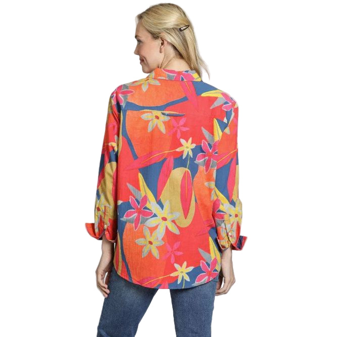 APNY Boyfriend Bright Orange Floral Button Front Shirt (T19P/C-032D/CT)