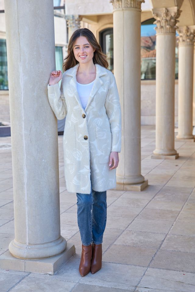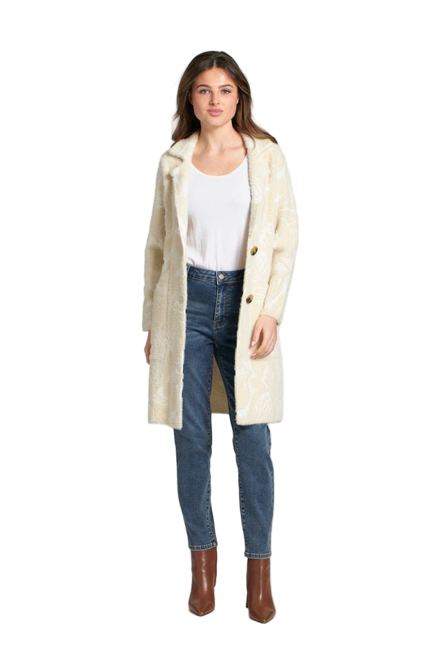 APNY Neutral Tone on Tone Print Cozy Long Cardigan Coat