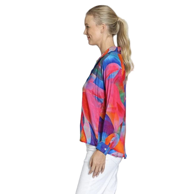 APNY Pink Blue Multi Abstract Half Placket Pull Over Shirt
