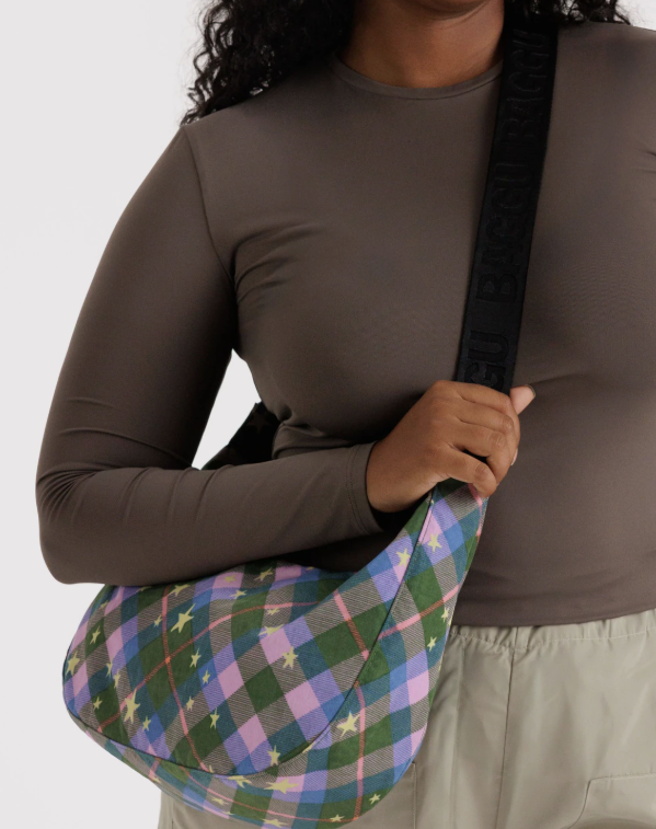 Baggu Medium Nylon Crescent Bag - Green Star Plaid