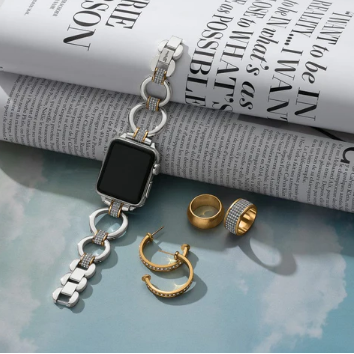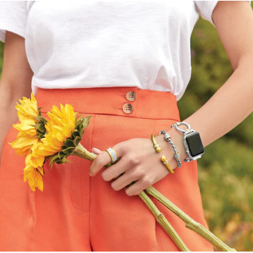 Give your Apple Watch® a fashion upgrade with our Meridian Smart Watch Band. With its pave-crystal accented barrels and rope motif, this stylish matcher to our Meridian Collection offers two fold-over clasp extenders for adjustability, and fits 38 mm case size and larger.