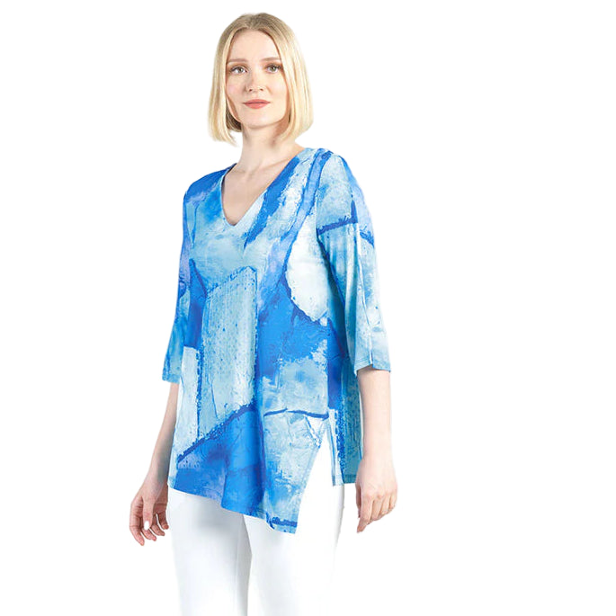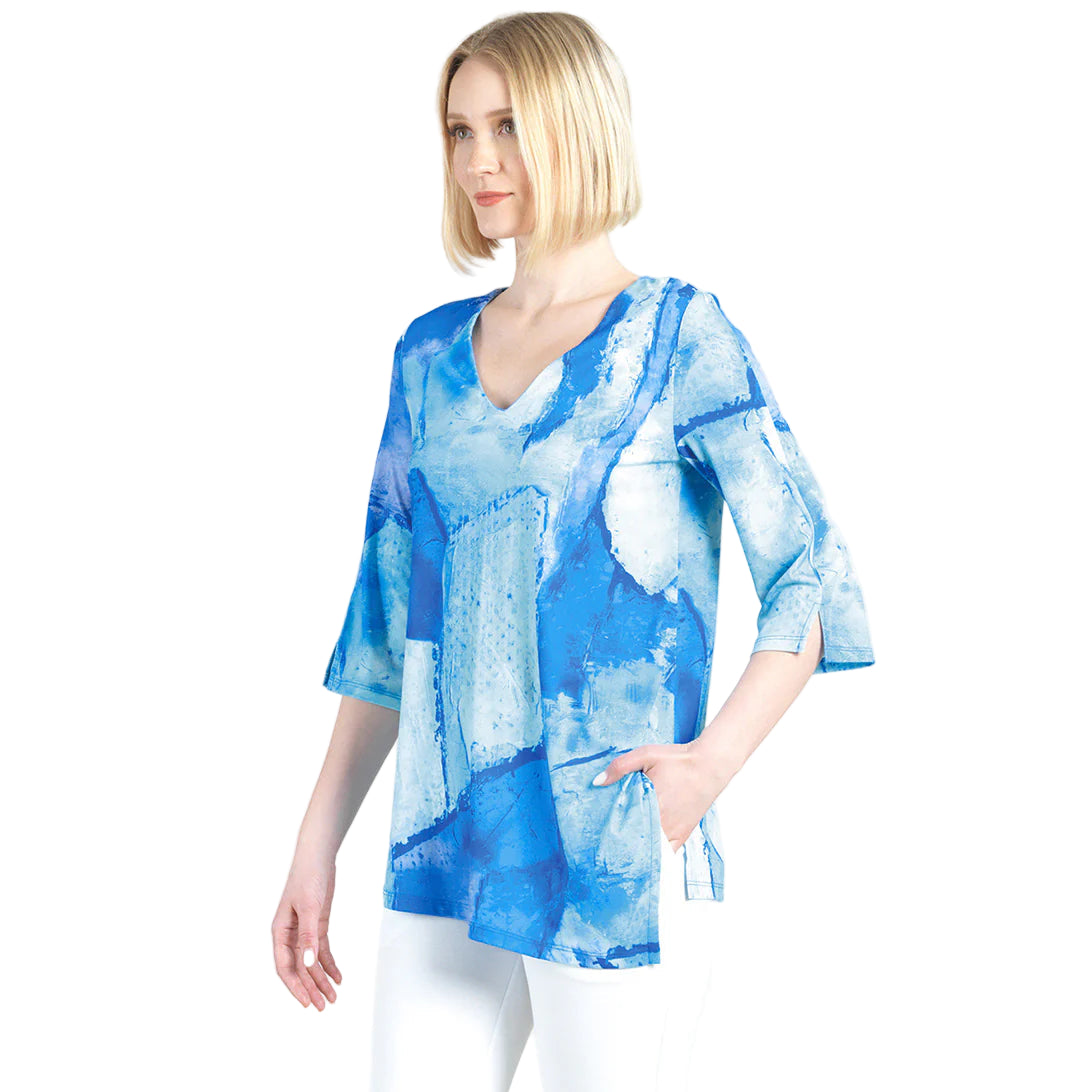 Clara Sun Woo Water Color Print V Neck Soft Tunic (TU6P1)(Peri Blu )