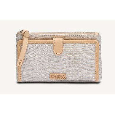 - 12 card slots, ID window, 4 slide pocket compartments with snap closure