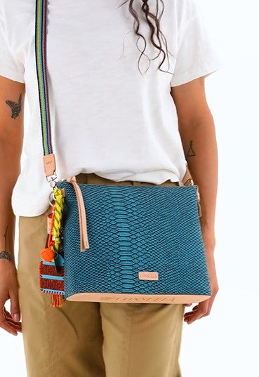 - 11” (W) x 9 ¼” (H) x 3” (D), 14 ½”-27” adjustable crossbody strap drop