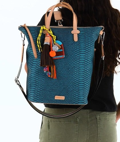 - Includes hand-painted leather bag tag with whipstitch detailing and knotted leather tassel charm