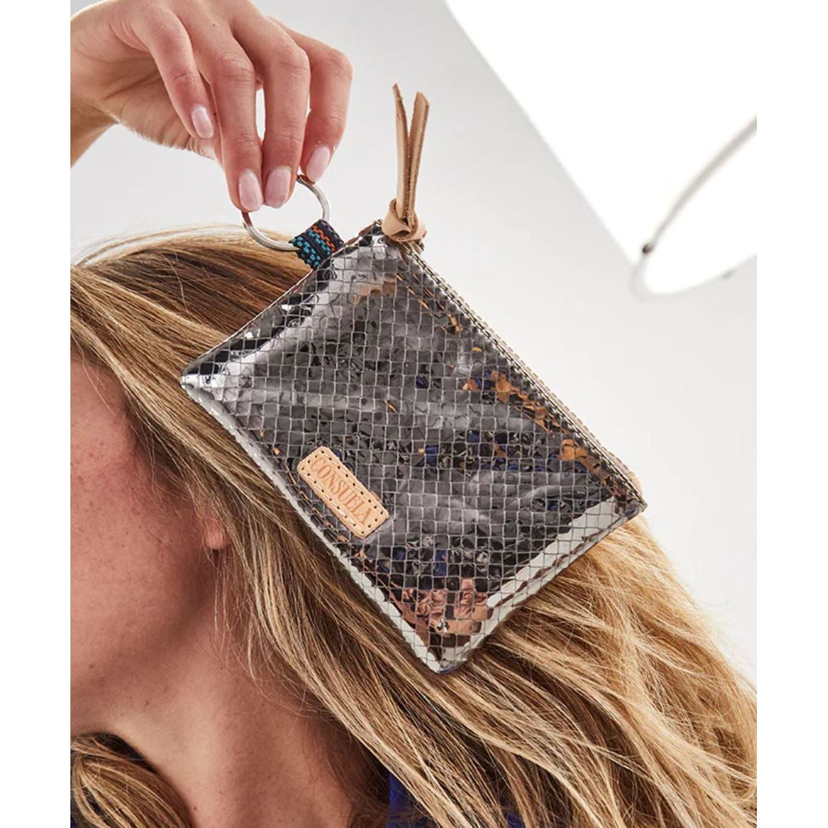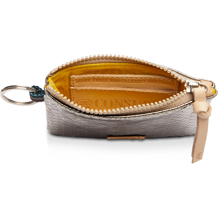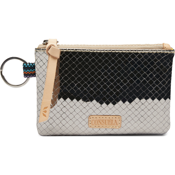 The Pouch is an easy, all-in-one bag to keep your cards and cash organized and on hand. An attached metal keyring takes the Pouch from your bag to keys with ease.