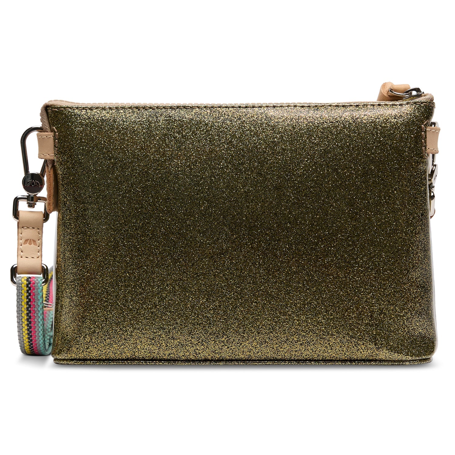 - 8¼" (W at the base), 9¼" (W at the top) x 5¼" (H) x 2" (D), 14-27½" adjustable crossbody strap drop