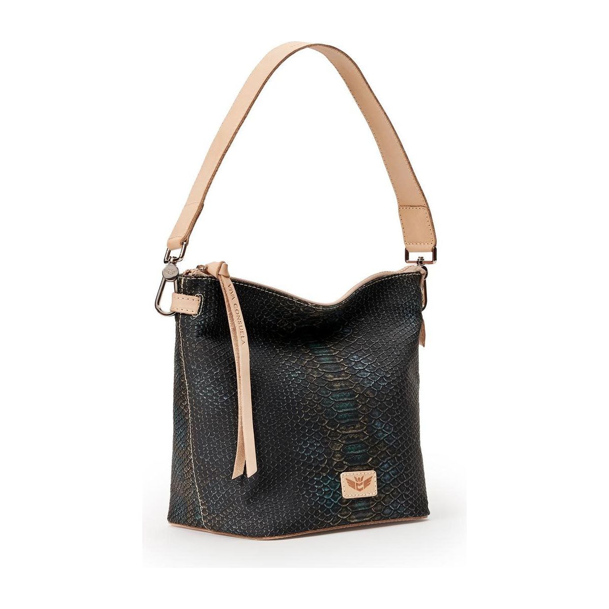 - 7 ¾” (W at the base), 11” (W at the top) x 9” (H) x 5 ½” (D), 8" handle drop or 12 ¼”-23” adjustable crossbody strap drop