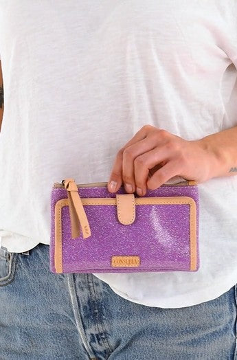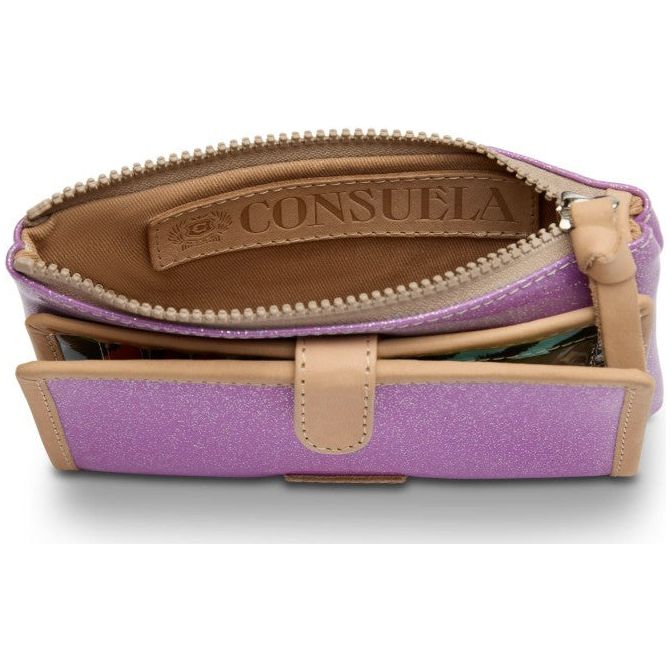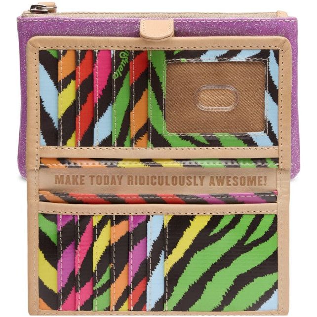 - 12 card slots, ID window, 4 slide pocket compartments with snap closure
