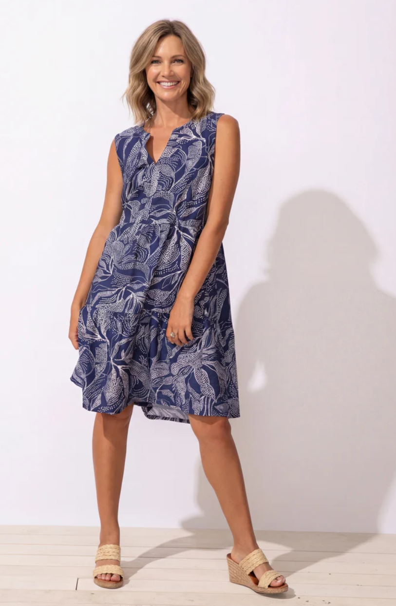 Escape Regatta Rayon Leaves Paradise Knee Length Dress (Navy)(85615)