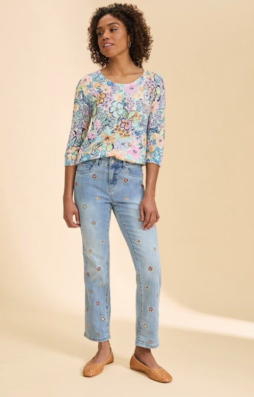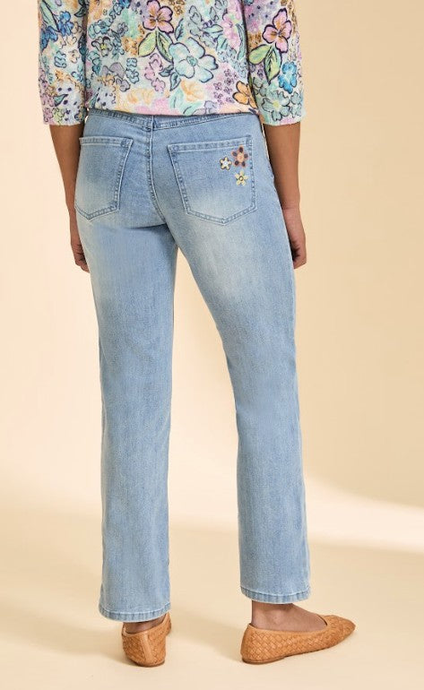 FDJ French Dressing Christina Floral Embroidered Straight Leg Jeans (MEDBLU)