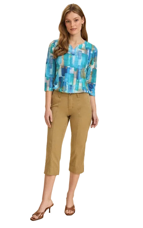 FDJ French Dressing Blue Rockefeller Print Notch V-Neck Top (TURQ/MULTI)(3839451)