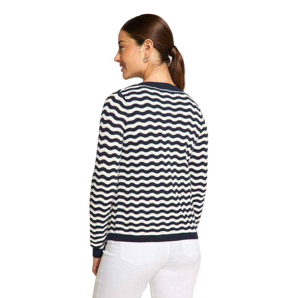 FDJ French Dressing Navy & White Wave Stitch Cardigan