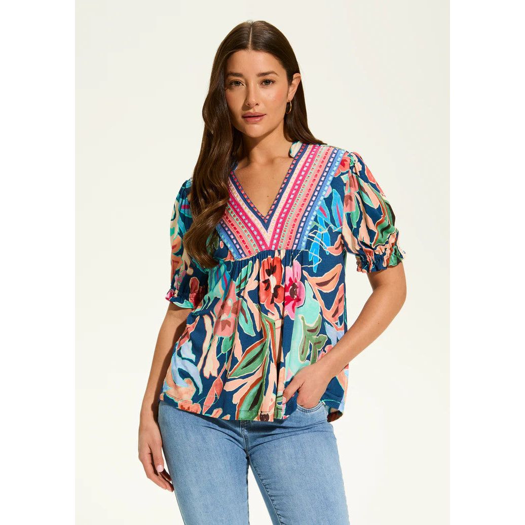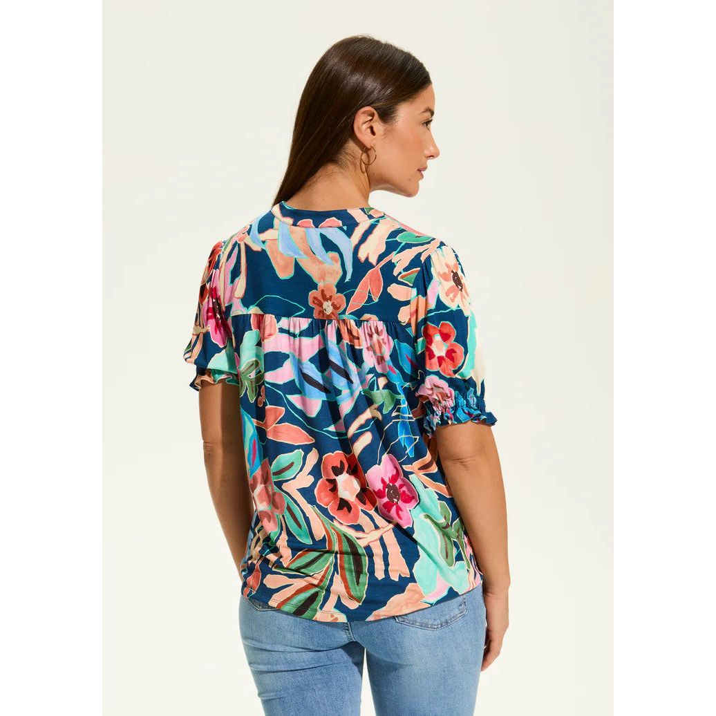 FDJ French Dressing Pop Camo Embellished Elbow Sleeve Top