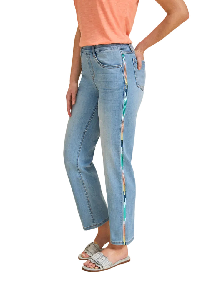 Experience ultimate comfort with these FDJ stretch jeans that move with you without restriction. Delicate colored embroidery on the sides adds a touch of sophisticated style to your wardrobe. With a timeless ankle-length cut, these pants pair perfectly with everyday outfits as well as special occasions. Premium quality and exceptional flexibility ensure a flawless look from morning to night.