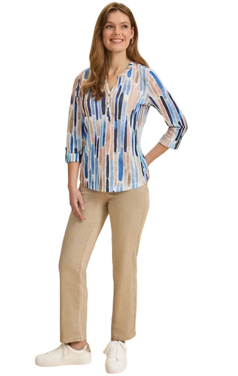 FDJ French Dressing Neutral Zippy Print Henley Top (NEUTBLU)(3926451)