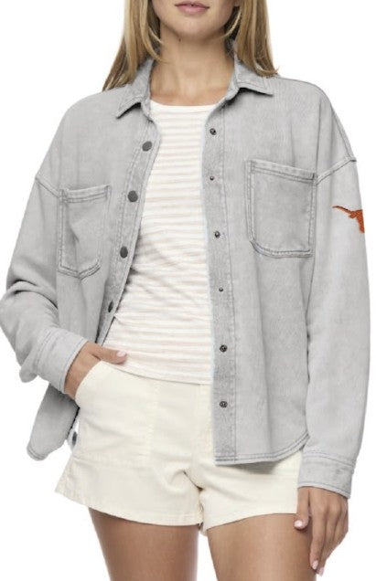 Texas Longhorn Flag & Anthem Ladies Super Plush Shacket (101-OW6293W) (Gry Heather)