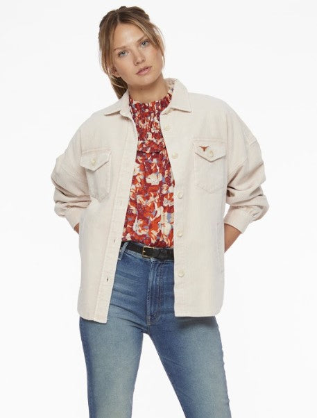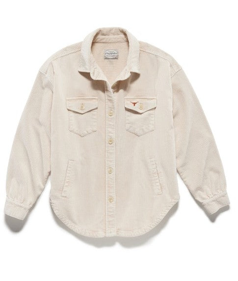 Texas Longhorn Flag & Anthem Ladies Cayce Corduroy Shirt Jacket (101-OW6019W)(Cream)