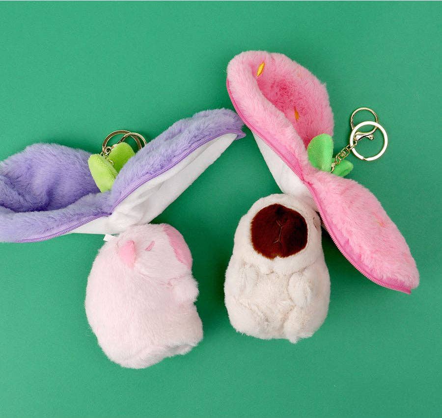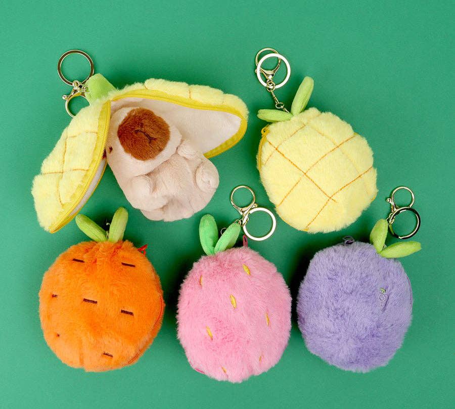 Product DescriptionAdd a touch of cuteness to your daily essentials with this Fruit Zipper Capybara Plush Keyring. Each keyring features a soft, fruit-shaped zip pouch that reveals an adorable capybara plush hidden inside. The color of the capybara is randomized, making each unzipping a fun surprise. With two attached keyrings, it’s perfect for use as a bag charm, key holder, or decorative accessory.