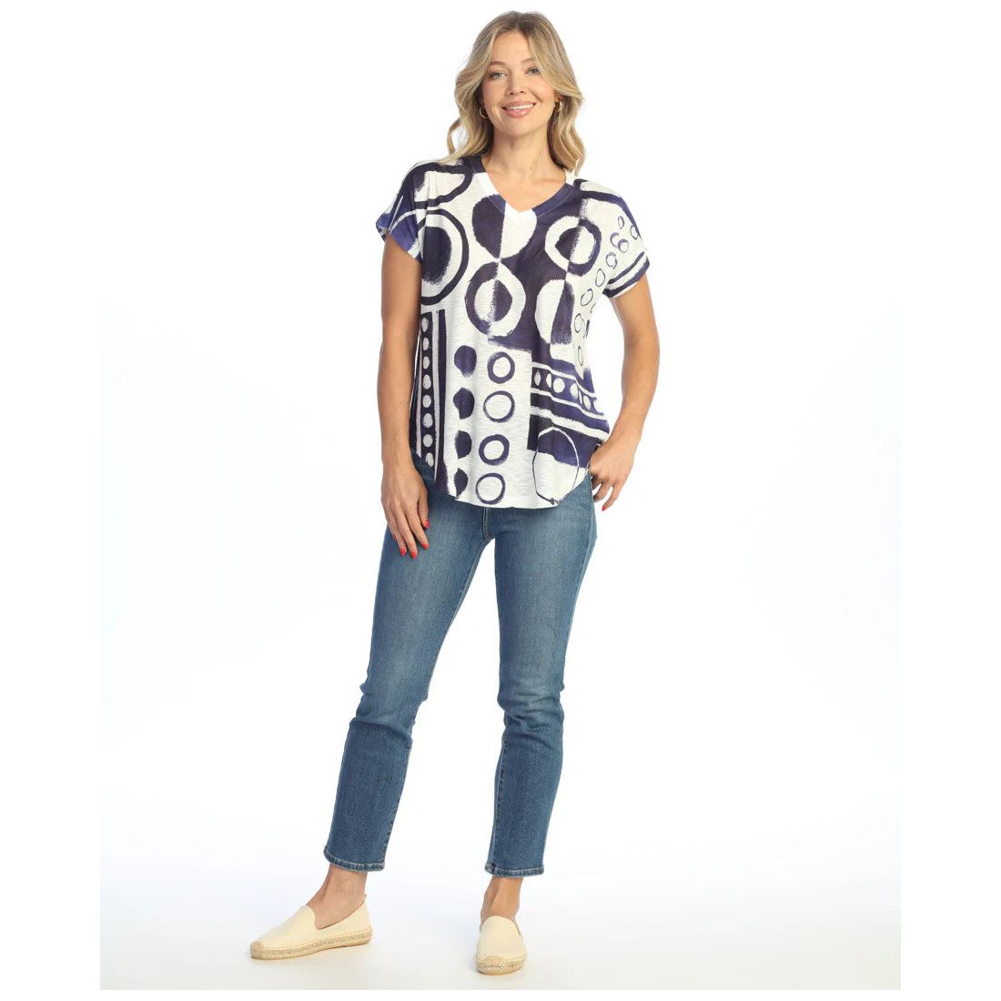 Jess & Jane Dottie V-neck Dolman Sleeve Top (Navy)