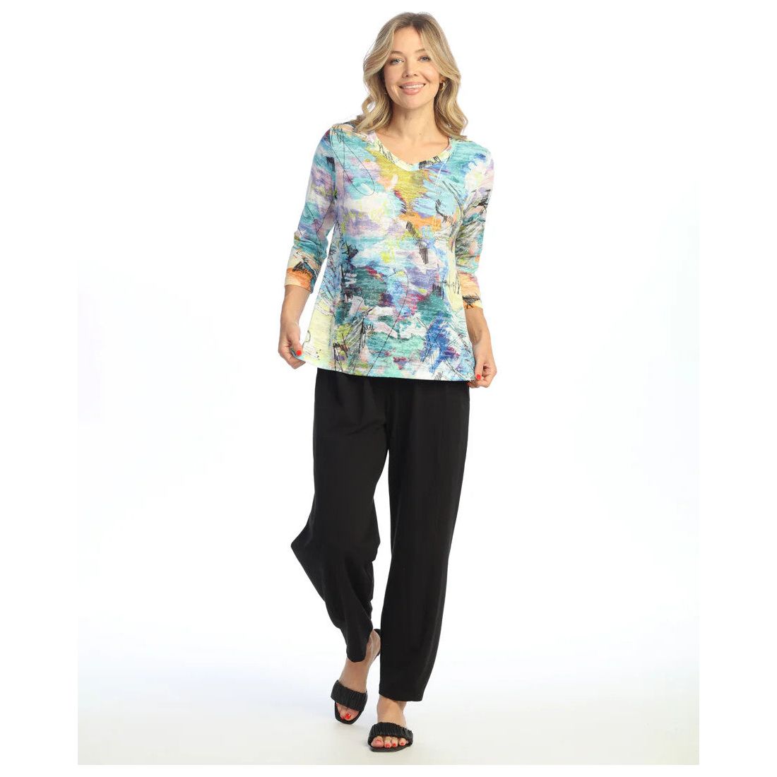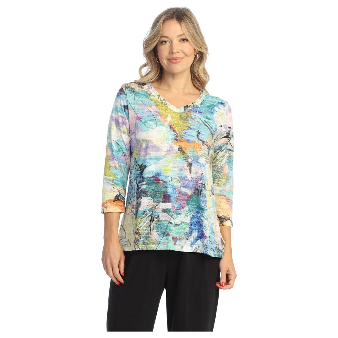 Jess & Jane Kelly Burnout V-Neck Top (46-2050)(Multi)