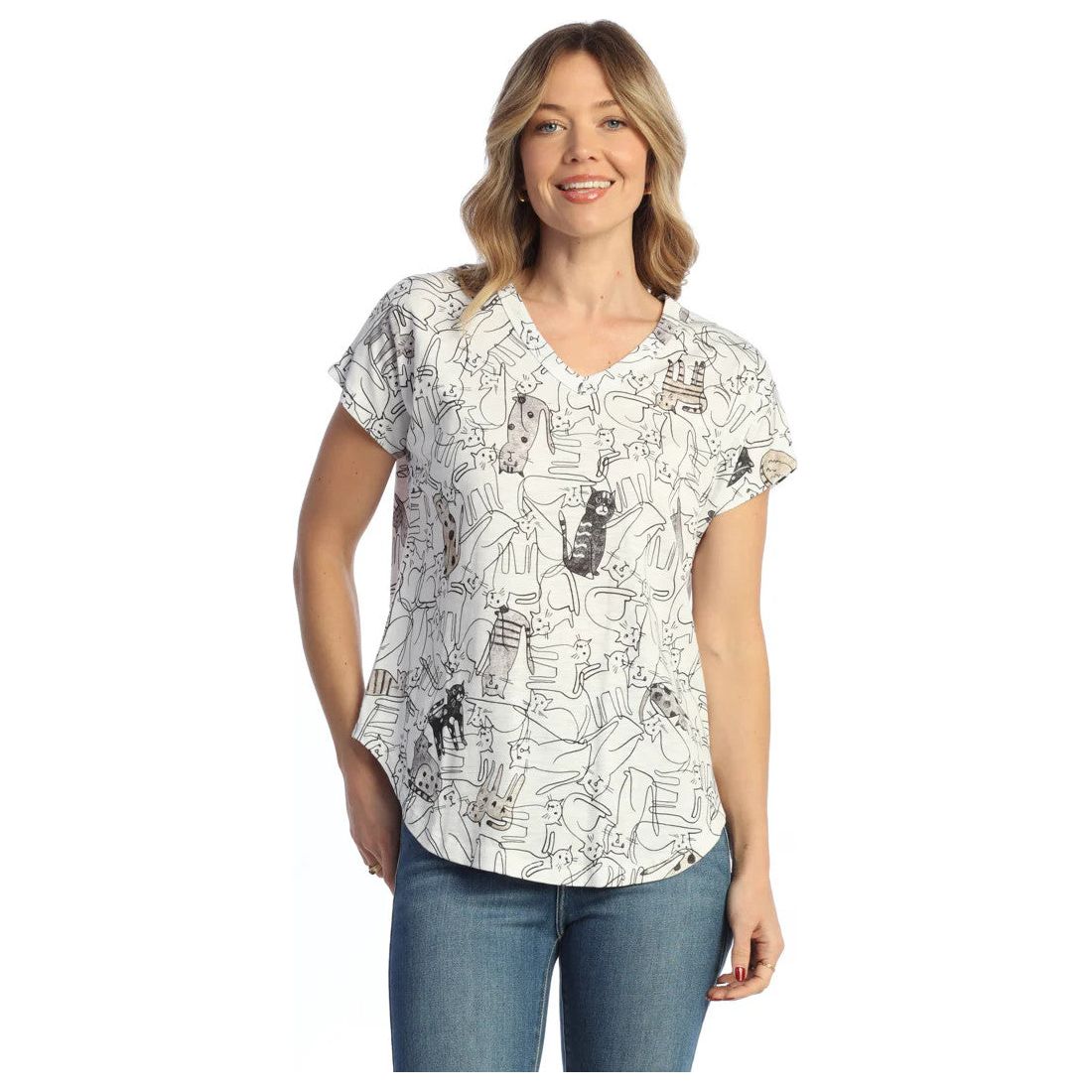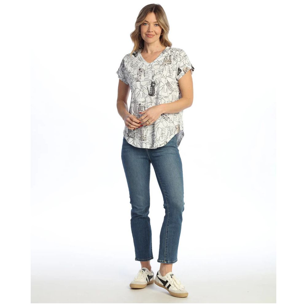 Jess & Jane Purrfect Easy Fit V-Neck Top (WHT/BLK)