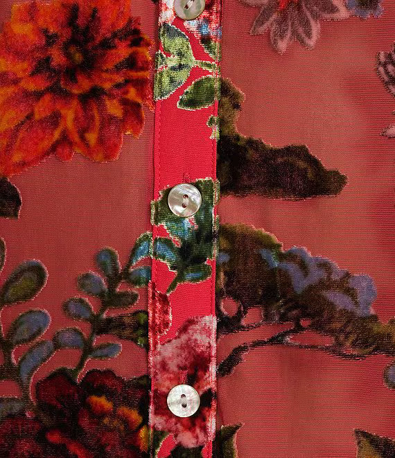 John Mark Floral Cheetah Burnout Velvet Button Front Shirt (RED)