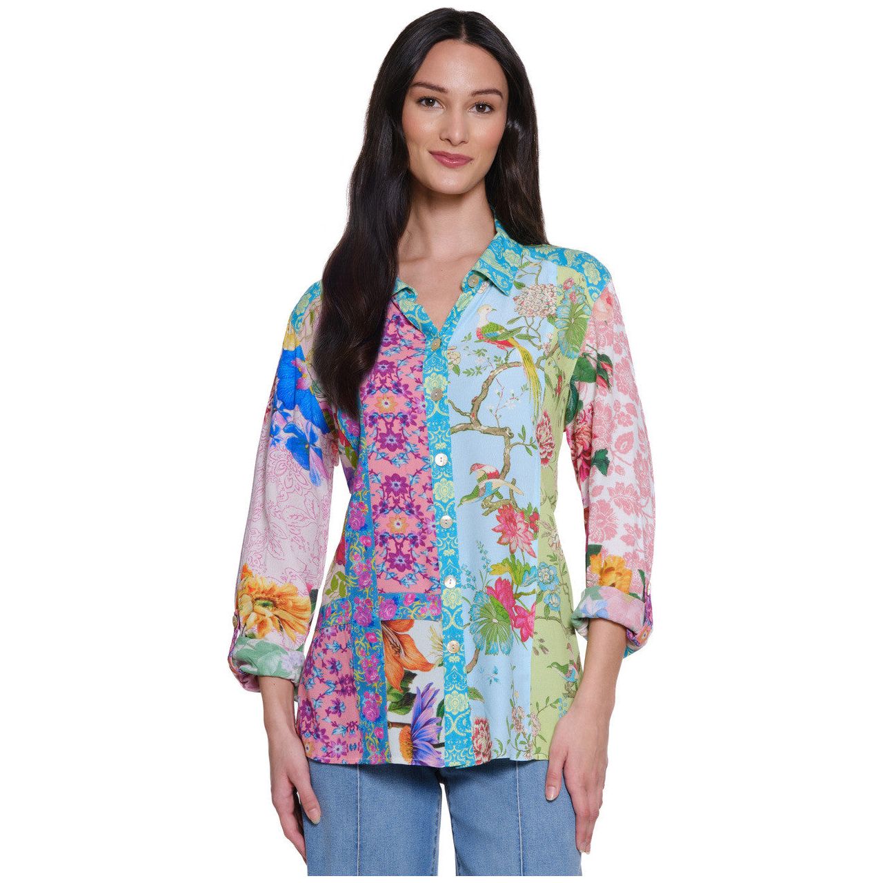 John Mark Mix Floral Patch Button Front Shirt