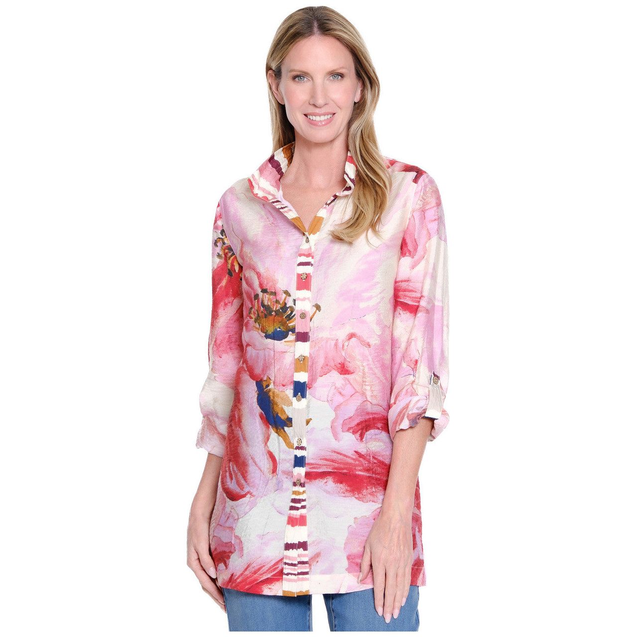John Mark Pink Floral Print Tunic ( J35741)
