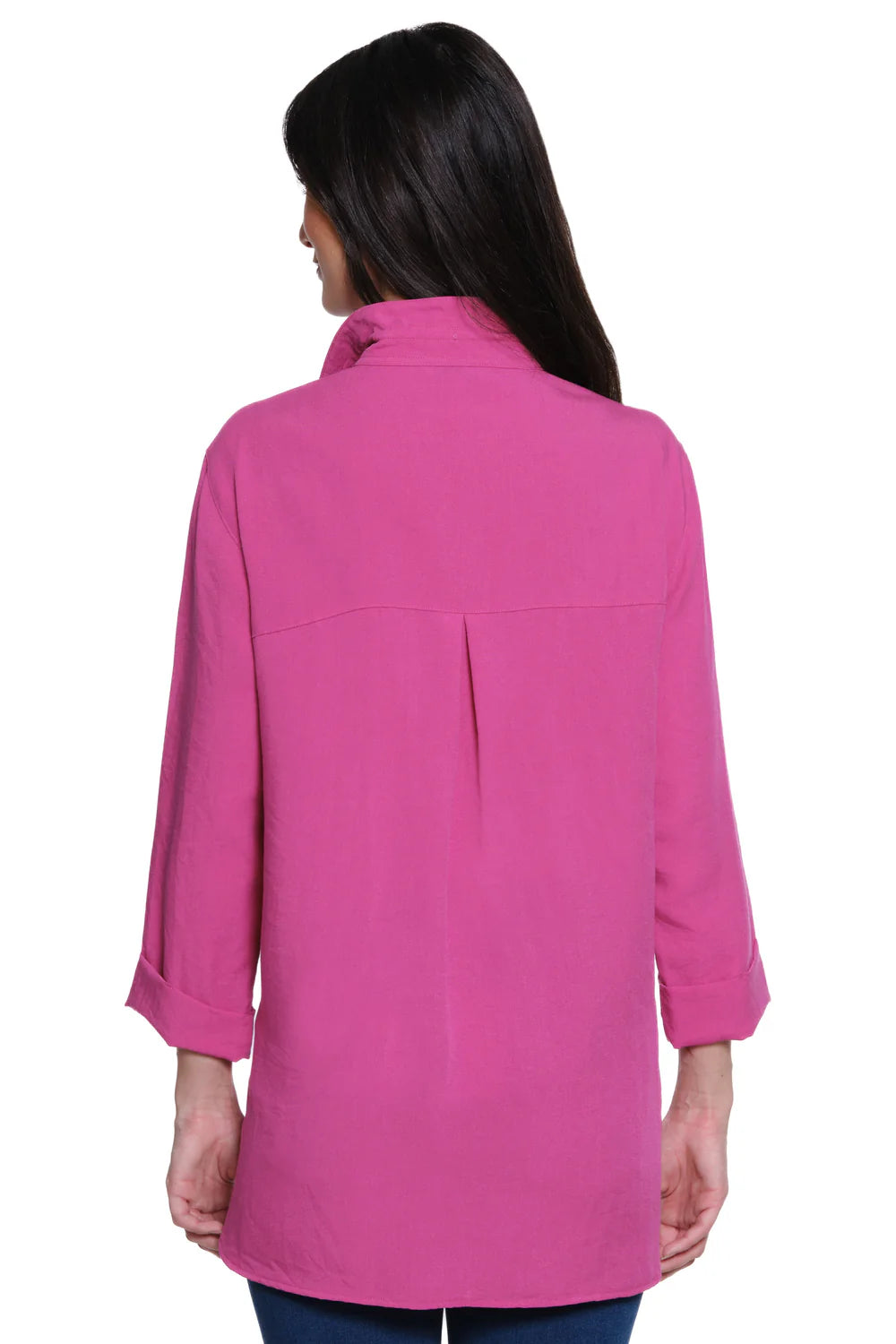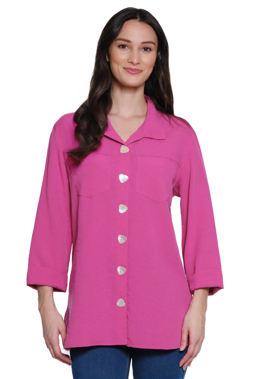 John Mark Solid Wire Collar Button Front 3/4 Sleeve Camp Shirt (2 Colors)