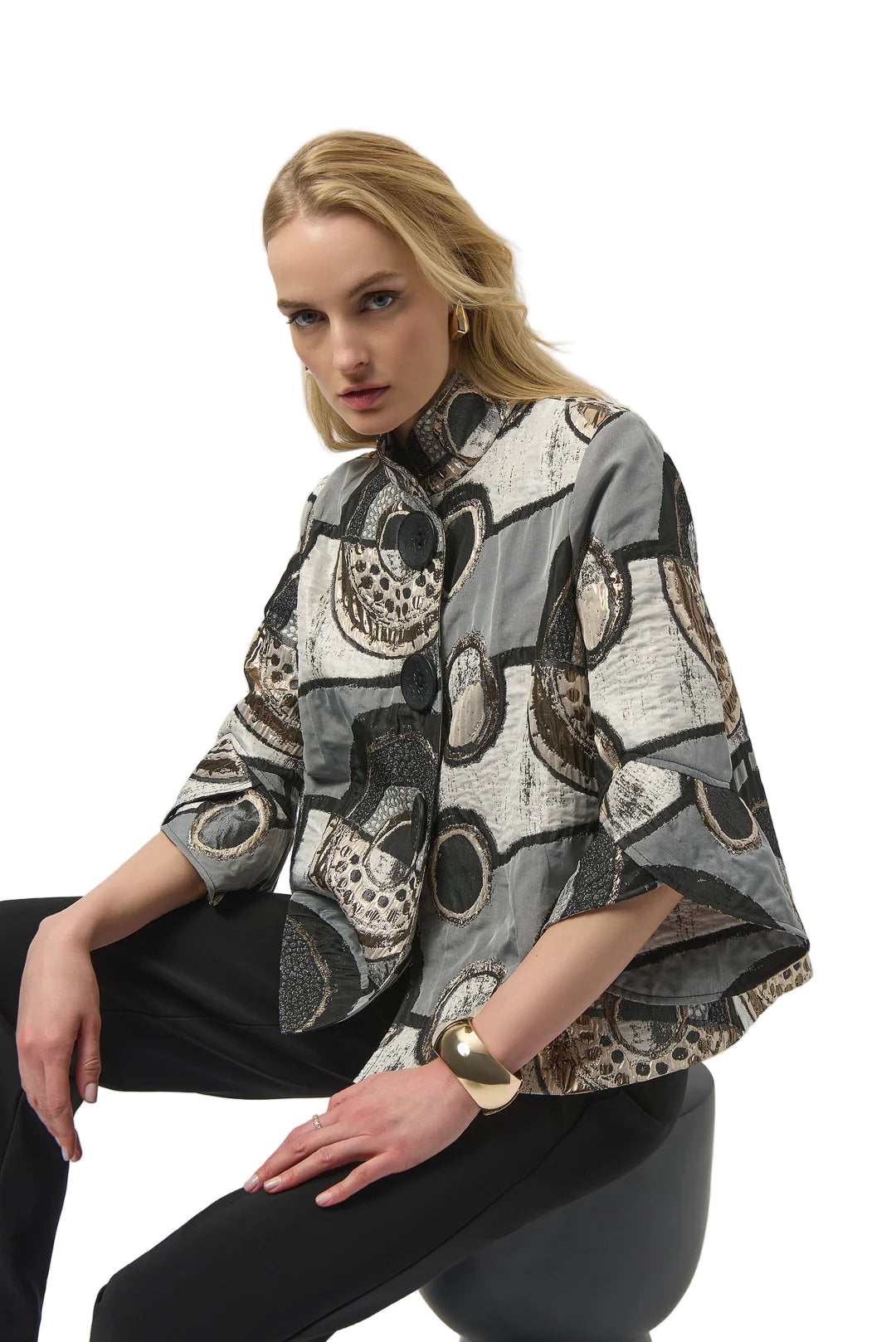Joseph Abstract Jacquard Trapeze Jacket with Tulip sleeves (254003-178)(Black Multi )