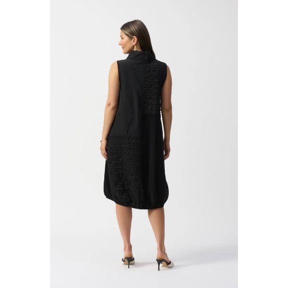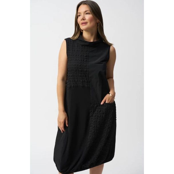 Joseph Ribkoff Black Sleek Patchwork Texture Cowl Neck Dress