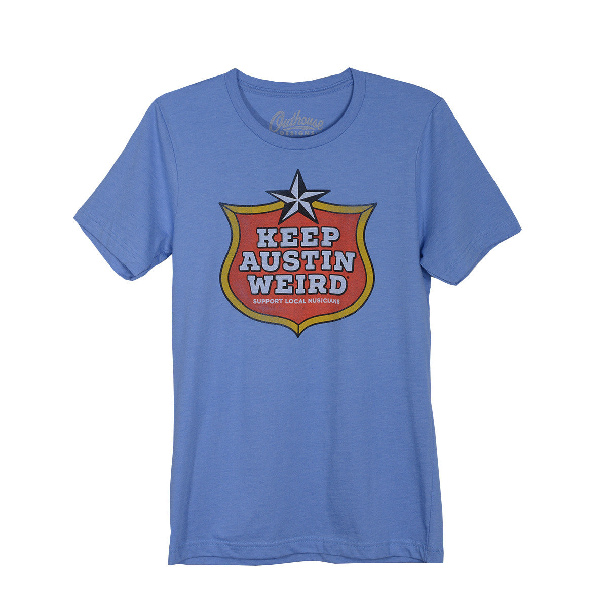 Outhouse Keep Austin Weird Badge Tee (CBLUE)