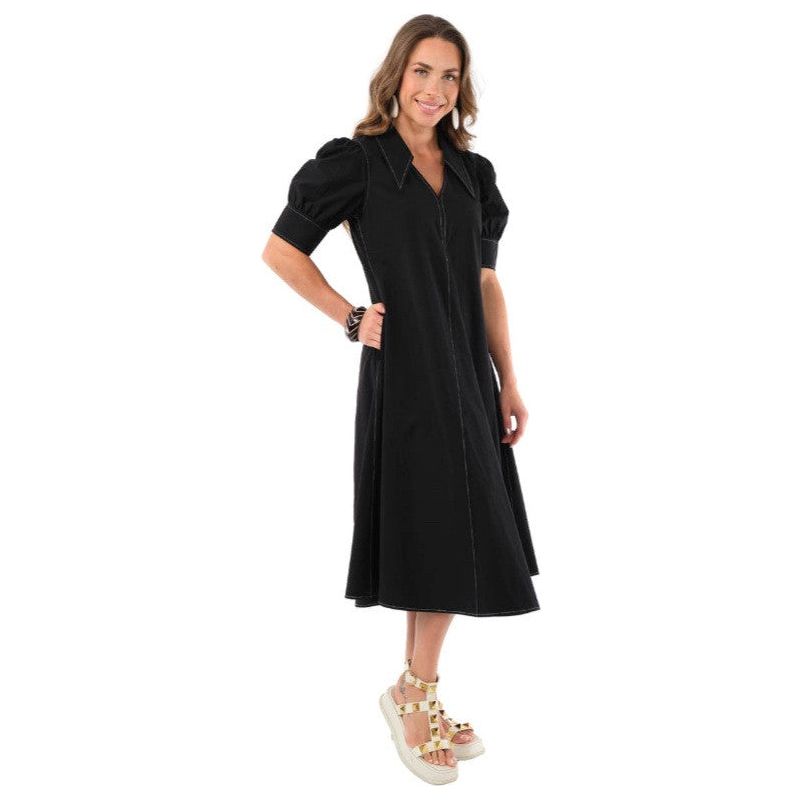 Lior Black Point Collar Short Sleeve Dress (Amber-1-AR)