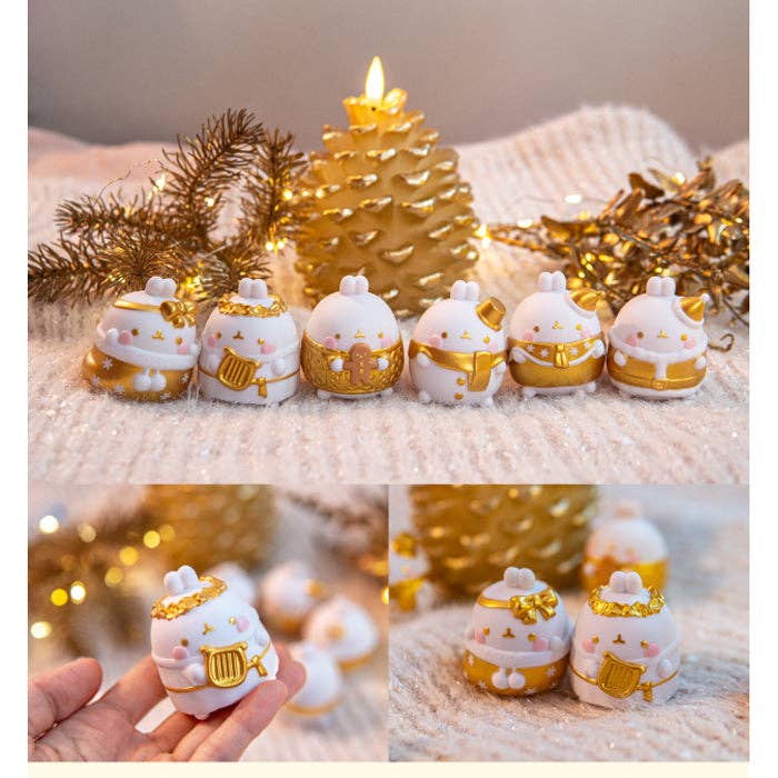 Product Description:Celebrate the season with the Molang Gold Holiday Lullaby Blind Box Figures!This dazzling special edition features Molang dressed in festive white and shimmering gold outfits—perfect for adding a touch of holiday magic to your collection. From gingerbread accents to golden scarves and instruments, each figure captures the warm and cozy spirit of the holidays.