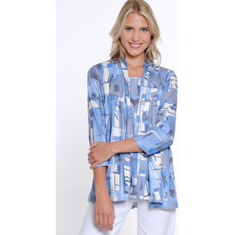 Multiples Abstract Print Flare Sleeve Open Front Jacket