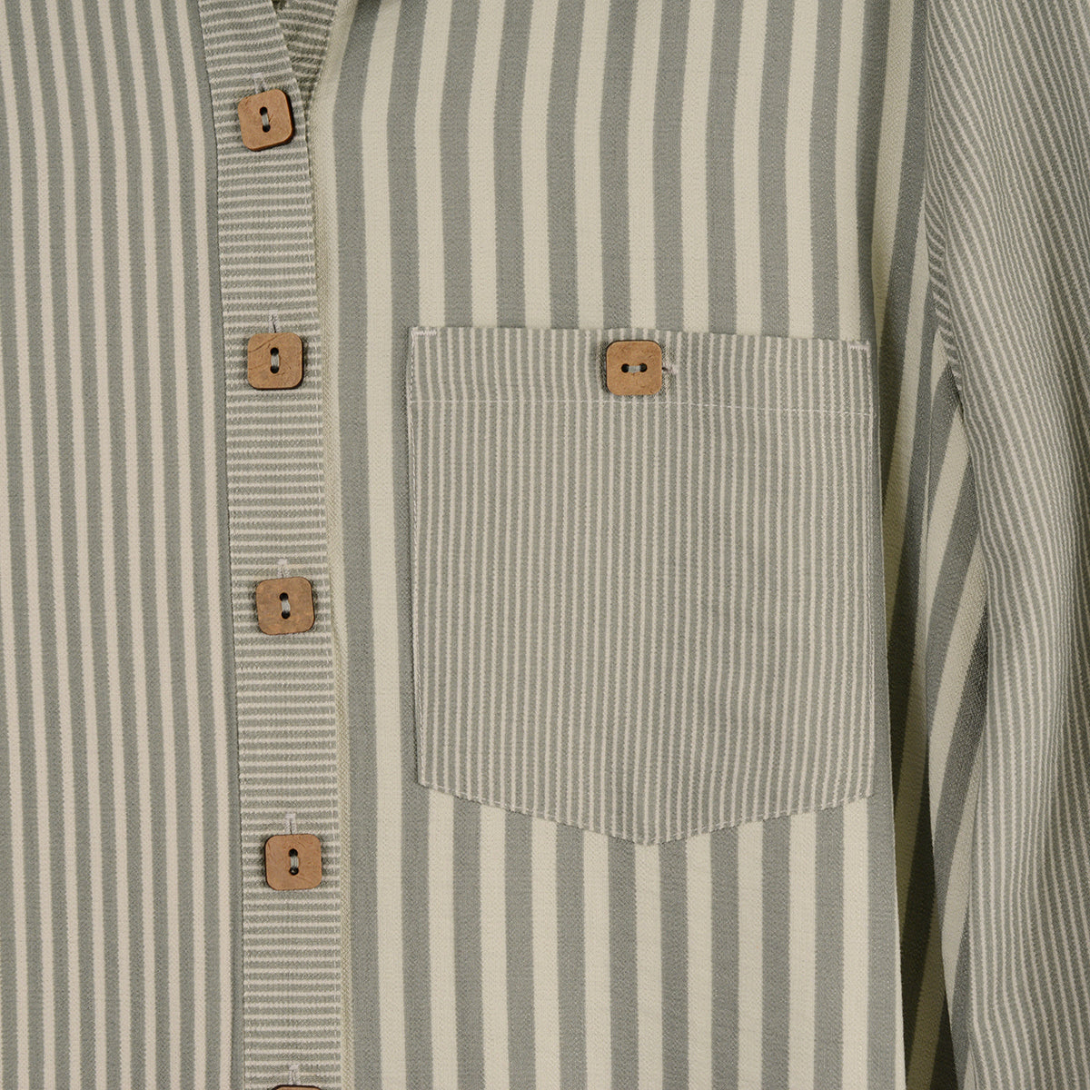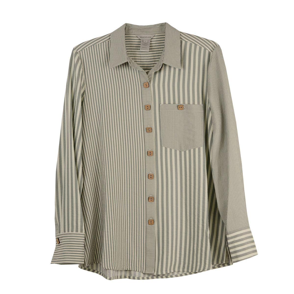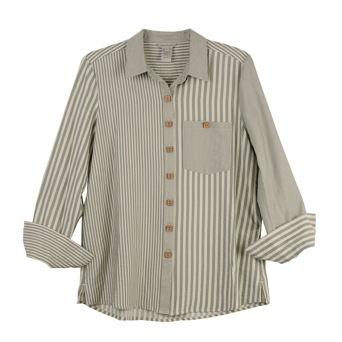 Multiples Sand Stone Stripe Turn Up Cuff Hi-Low Button Front Shirt (M35609BM)
