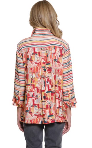Multiples Collage Print Turn Up Cuff Hi-Low Button Front Shirt (M35611BM)