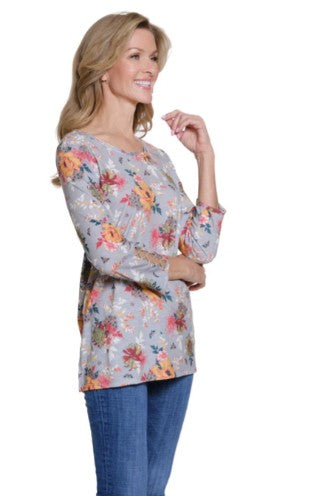Multiples Floral Print Lace Detail Knit Top (M35608TM) (GRYMULTI)