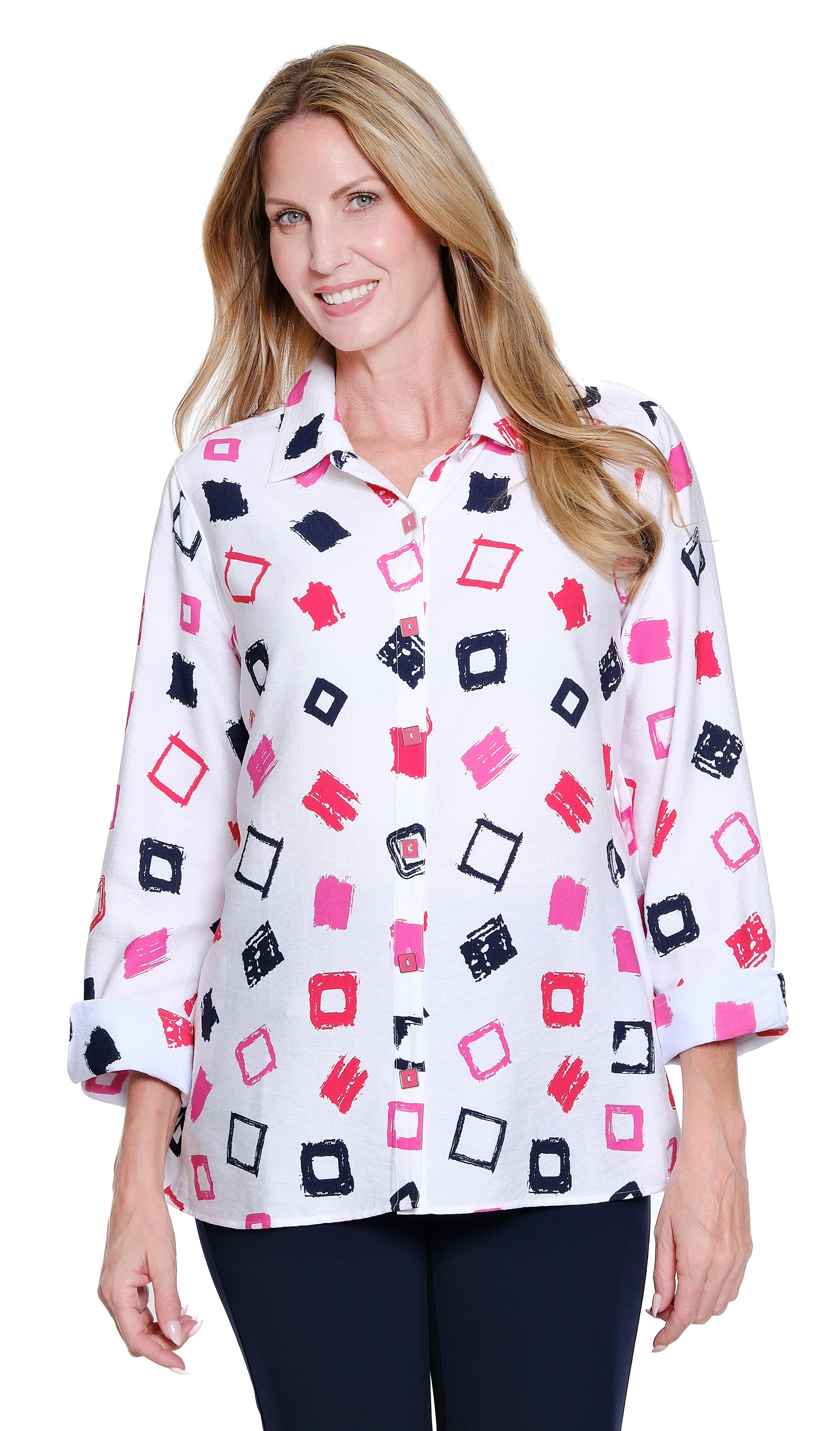 Multiples Turn-up Cuff Button Front Shirt (M16606B)
