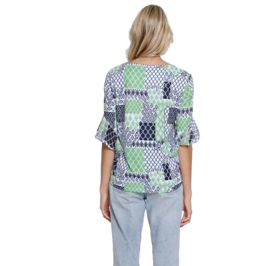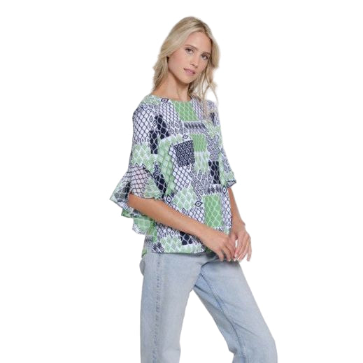 Multiples Geo Multi Flounce Sleeve Scoop Neck Top
