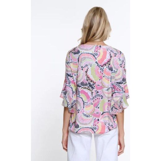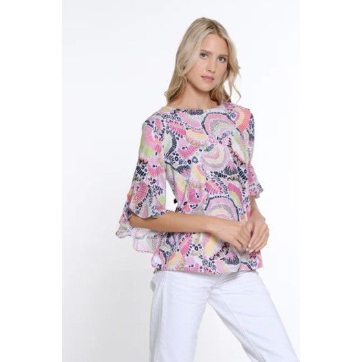 Multiples Print Flounce Sleeve Scoop Neck Top (PNK)