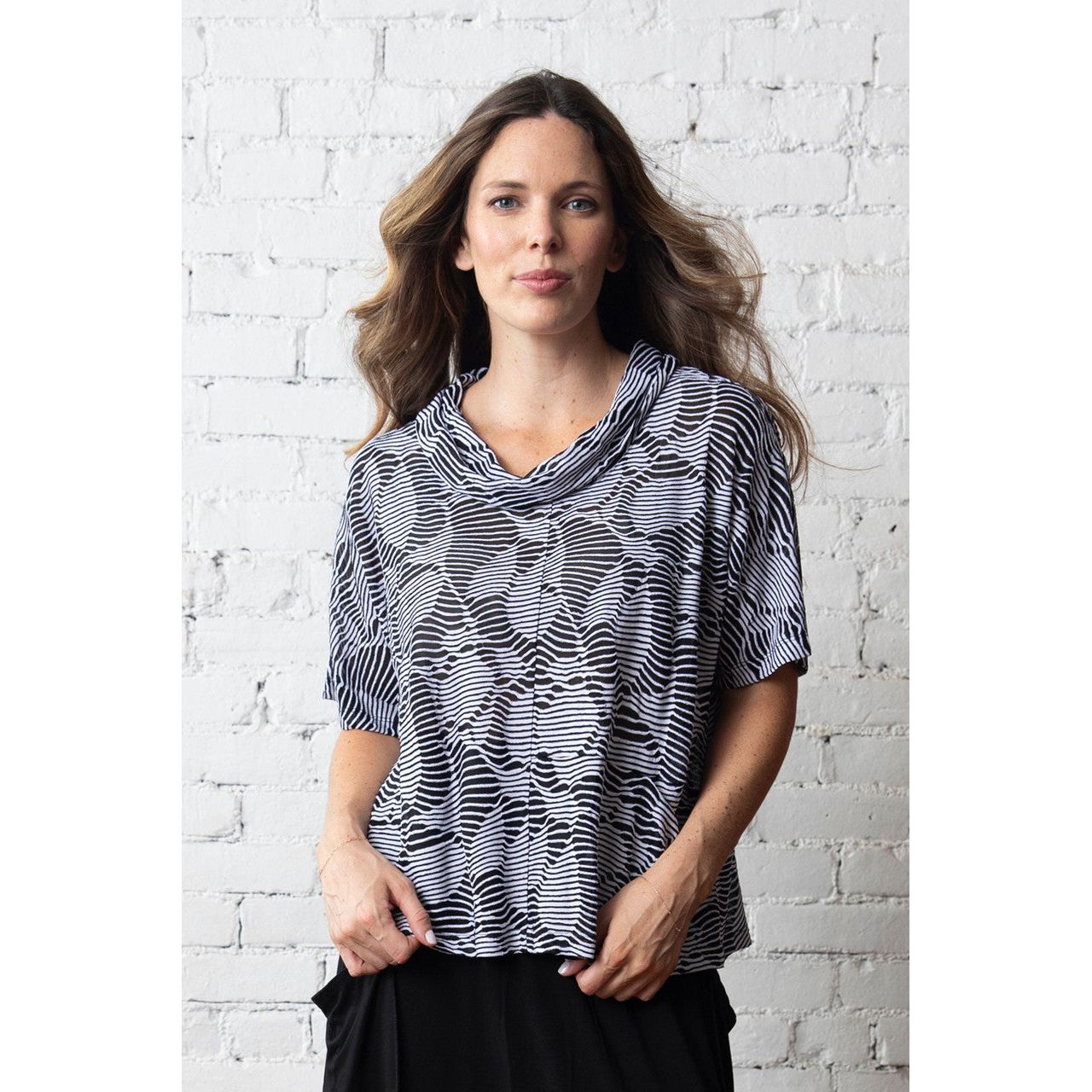 Olivia by Habitat Ivy League Print 1/2 Sleeve Pull-Over (BLK)
