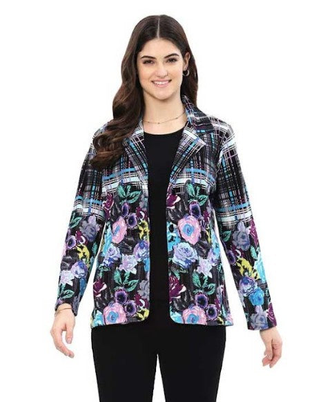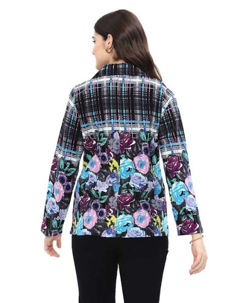 Parsley & Sage Bloom Floral & Plaid Print Jacket (BLK/TURQ/PNK)
